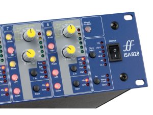 Elődjéhez képest lehagyták róla, a VU-metert, az előlapi bitmélység választót és a soft limitert. Probléma nélkül fogadja a korábbi 428/828 analóg/digitális konvertereket. A régi, jól bevált Lundahl L1538-as transzformátor maradt a helyén a széles átviteli spektrum érdekében. Nyolc különböző impedencia közül választhatsz, a tökéletes illesztés érdekében. Legyen szó kondenzátoros, dinamikus vagy ribbon mikrofonról, egyik sem lehet probléma, hiszen mindegyiket ultra-alacsony zajjal tudjuk erősíteni a 122dB gain-nek köszönhetően. Választhatunk vonal, mikrofon és hangszer bemenetek közül. Továbbá előlapról kapcsolható az inzert pont, megtalható benne egy fázisváltó, fantomtáp kondenzátor mikrofonkhoz, LED-es kivezérlésjelző és egy állítható frekvenciájú felületáteresztő szűrő. Az ISA 828 maga a „pro audio” világ.
