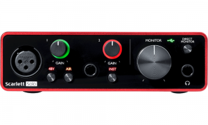 USB-C 2.0 audio interfész, 2 be/2 ki, egy db mikrofon bemenet, egy db hangszer/vonal bemenet, 24 bit/192 kHz felbontás, USB tápellátással, tartozék kondenzátor mikrofonnal, fejhallgatóval, és kábellel.